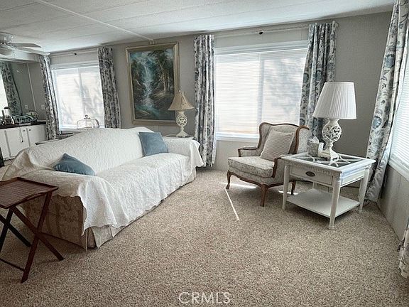 This newly remodeled, move-in ready home in a 55+ community includes new energy-efficient windows, blinds, beautiful water-efficient landscaping, fresh paint, updated hardware, an upgraded kitchen and bathrooms, an updated electrical panel, a new deck, and much more. The home also comes with a washing machine, dryer, refrigerator, and new kitchen cabinet wall units. Covered parking accommodates three or more cars, and best of all—there is NO SPACE RENT, as the homeowner owns the land. Community amenities feature free use of the golf course and pickleball court, free RV parking, a gym, pool, spa, and a clubhouse complete with a library and billiard room. Don’t miss the boat on this one!