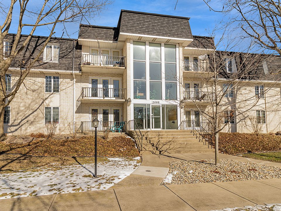 2 Bedroom 2 Bath Large 2nd Floor Corner Unit in a Quality Flexicore Constructed 55+ Building with Elevator and 2 Dedicated Parking Spaces in the Heated Underground Garage. Features include Foyer with multiple Closets, Living Room/Dining Room Combo with door to Private Balcony overlooking Lansing Woods, Kitchen, Master Bedroom with Walk-in Closet and Private Bath, 2nd Bedroom, Full Guest Bath and In-Unit Laundry. Recent updates include New Oven/Range and Dishwasher (2023), Newer Furnace and HWH. Monthly Assessment covers Exterior Maintenance, Water, Common Insurance, Scavenger, Lawn Care and Snow Removal. Great Location and Value! NOTE: Property is in Good Condition being sold As Is; no Rentals, no FHA, 55+ age restriceted.