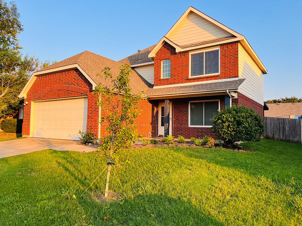 Welcome Home to this perfect 3-bedroom, 2.5 bath open floor plan, located in the highly sought after Sundown Ranch neighborhood. This house is conveniently located near restaurants, movie theaters, shopping, with quick access to I-35 and 2499. Fresh paint throughout, new luxury vinyl plank flooring in great room and bedrooms, tiled kitchen, bathrooms and laundry area, and new carpet on stairs and upstairs hallway. Come home to a large, covered patio in the backyard which is perfect for relaxing and entertaining after a long day. A privacy fence, full sprinkler system and garage door opener are included on property. You will have access to all of the amenities of the community including clubhouse for parties, indoor and outdoor basketball courts, swimming pool, playgrounds and walking paths. The HOA payment, lawn service and pest control are included with your rent. Small dogs allowed with pet deposit.