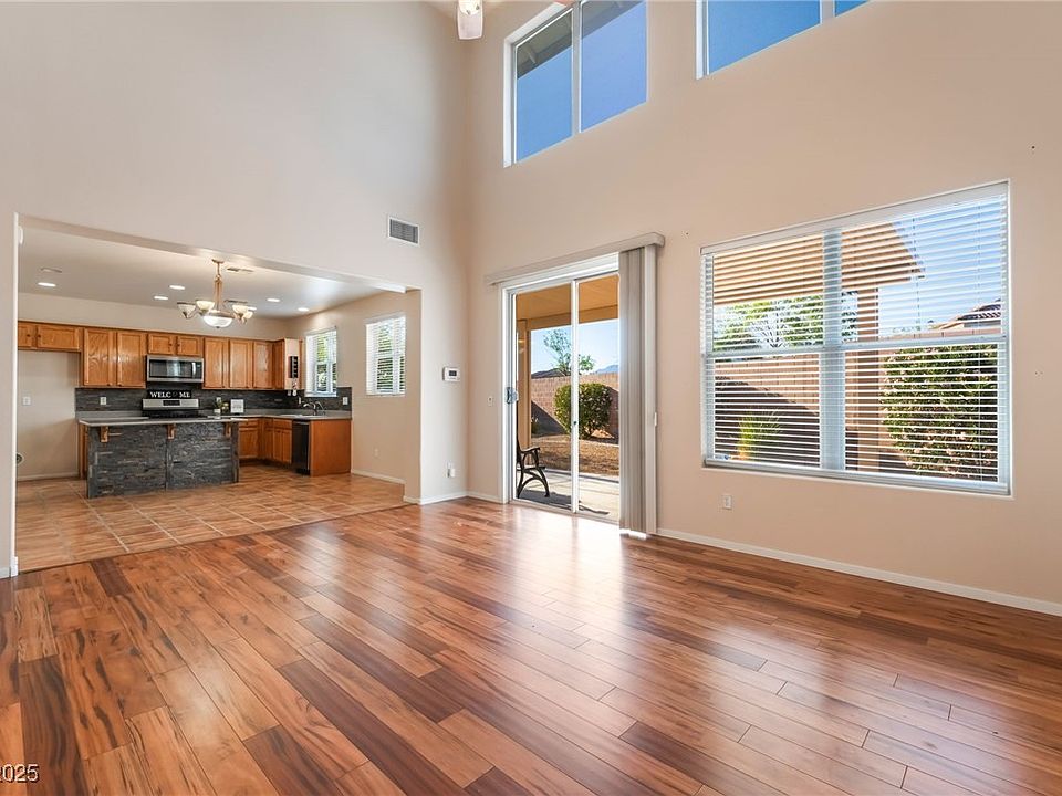 Welcome to this stunning 4-bedroom (Primary bedroom downstairs, 3 bedrooms upstairs), 2.5-bathroom 2-car garage home, located in a gated community in desirable North Las Vegas. The spacious primary suite is conveniently located downstairs, offering privacy and comfort. The entryway is filled with natural light and the home boasts an open floorplan, and a separate formal dining area downstairs that can be used for an office, game room, pool table or formal dining room... your options are a limitless. The family room flows seamlessly into the kitchen—perfect for entertaining. Upstairs features a generous large open loft and a convenient Jack and Jill bathroom shared by the secondary bedrooms. The backyard is ideal for gatherings, with a large covered patio and plenty of room to relax or play. Don’t miss the chance to make this bright, versatile home yours!
