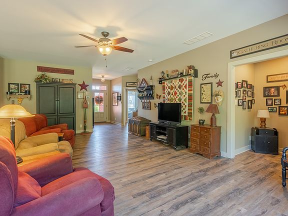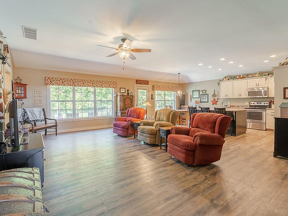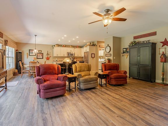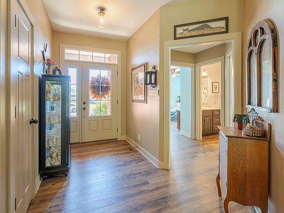 Beautiful all brick ranch with open floor plan. Gorgeous, Amish built kitchen cabinets, stainless appliances and large kitchen island highlight this great home. The dining area is large enough for a formal dining suite. This spacious living area is great for entertaining. Split bedroom design with 2 bedrooms to the front of the home and the primary bedroom overlooking the backyard. The home also offers abundant storage with large closets and also garage shelving. Kitchen appliances as well as washer and dryer, plus all window treatment included, along with a 1 year home buyer's warranty ($535). Excluded: Peonies in backyard, some starts off bushes, bell on post and green & red birdhouses, 2 trellis and blue Obelisk in backyard, plus shelves and corner cabinet in great room.