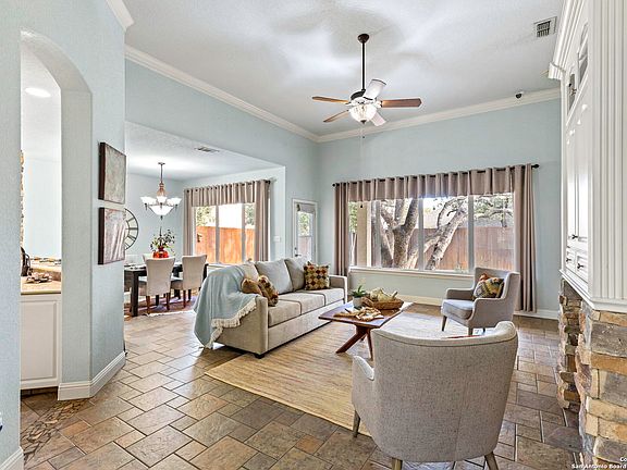 Welcome home to this thoughtfully designed 3-bedroom, 2-bath Parker Custom home in the gated community of Champions Village. This residence offers the perfect blend of function and style, featuring an open-concept layout and well-planned spaces that create an inviting flow-ideal for everyday living and entertaining. The oversized primary suite is a true retreat, showcasing a spacious en-suite bath with a walk-in shower, relaxing corner tub, private toilet area, and dual vanities with separate his-and-hers sides. A generous walk-in closet provides ample storage and organization. At the heart of the home, the kitchen offers abundant cabinetry, a large island perfect for casual dining, and a seamless connection to the main living areas-perfect for gatherings with family and friends. Step outside to your private backyard escape with a covered patio-ideal for summer barbecues or peaceful evenings under the Texas sky. The yard is fully enclosed with an extra-high privacy fence for added comfort. Additional highlights include an oversized two-car garage, dedicated laundry room, full sprinkler system, and security system. With convenient access to top-rated schools, shopping, dining, and all the charm New Braunfels has to offer-including rivers, parks, and the historic downtown-this well-maintained, move-in-ready home is truly a gem.