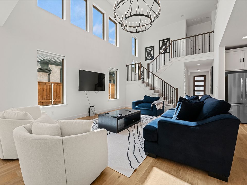 Discover one of the best values in Celina in this beautifully designed 4-bedroom, 4-bath home with a dedicated home office and an oversized upstairs game room. A welcoming foyer introduces the private office with French doors, perfect for working from home or studying in peace. The gourmet island kitchen features a corner walk-in pantry and seamlessly connects to the spacious, sun-drenched two-story family room and dining area, ideal for entertaining.