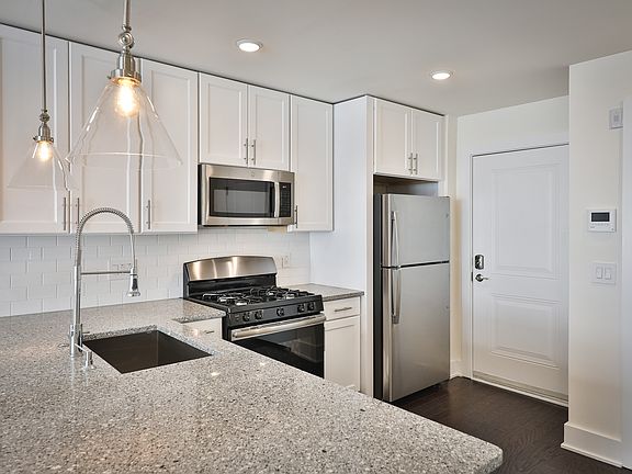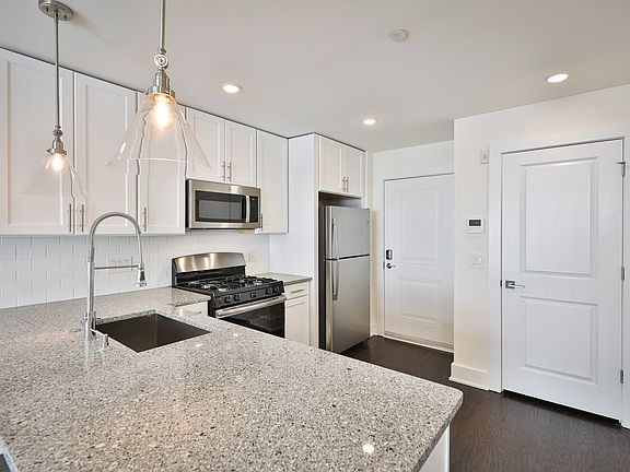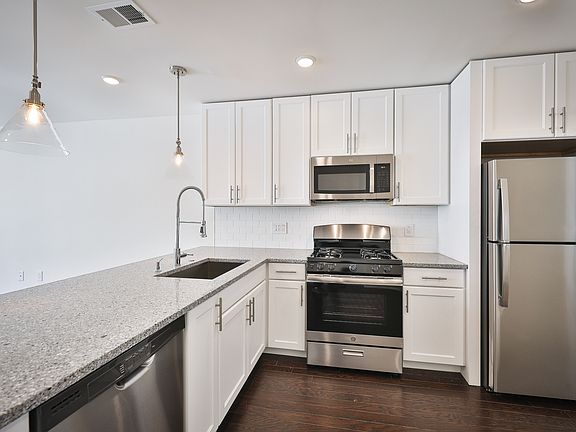 AVAILABLE NOW! Enter your new construction apartment into your L shaped kitchen that opens up into your spacious living area. Head upstairs where you will find your first bedroom, with a large closet, full bathroom and washer and dryer units. Continue up to the next floor and you will find the second bedroom equipped with TWO large closets, full bath with walk in shower and linen closet. That's not it! Continue up one more floor to find your own private roof deck!