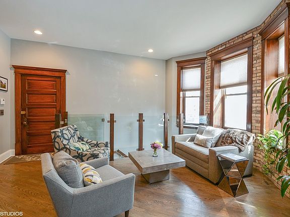 Tucked away on a tranquil, tree-lined street in one of Lincoln Park's most coveted enclaves, this generously sized 3-bedroom, 3-bath duplex-down blends vintage charm with modern sophistication--offering the comfort and flow of single-family living within the sought-after Alcott Elementary School District. Step inside to discover a thoughtfully curated home where design and function harmonize. The chef's kitchen impresses with custom cabinetry, Pratima soapstone countertops, a travertine backsplash, and premium Thermador and Liebherr appliances-perfect for both everyday living and elegant entertaining. The open-concept layout seamlessly connects living, dining, and kitchen spaces while maintaining privacy for the two main-level bedrooms, each complemented by its own beautifully appointed bath. The fully finished lower level invites relaxation, featuring plush carpeting, a cozy fireplace, and an additional bedroom and bath; an ideal retreat for guests or quiet evenings in. Additional amenities include a dedicated in-unit laundry and mechanical room, one outdoor parking space, and access to a shared rooftop deck for enjoying warm Chicago nights under the skyline. A rare find where comfort, style, and modern convenience converge, this Lincoln Park treasure is truly not to be missed.