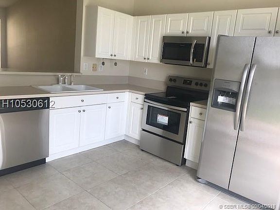 Beautiful & well kept one story townhouse with breathtaking lake views. Boasting brand new stainless steel appliances in kitchen & modern washed wood /laminate floors in all bedrooms. Great built in work station desk in the hallway adds space and organization to your home. Freshly painted in neutral color throughout with neutral tile floors in all living areas. Enjoy the outdoors from the extended pavared patio with great relaxing & private lake views. Indoor laundry area & one car garage fully functional as a garage but also fully tiled with some insulation & some AC. Wonderful community steps away from the pool & with security gate, walking distance to elementary school, & close to shopping, banks, highways, parks, hospitals & much more. Enjoy Sunset Lakes Resort style Club house.