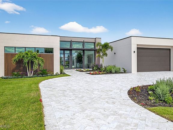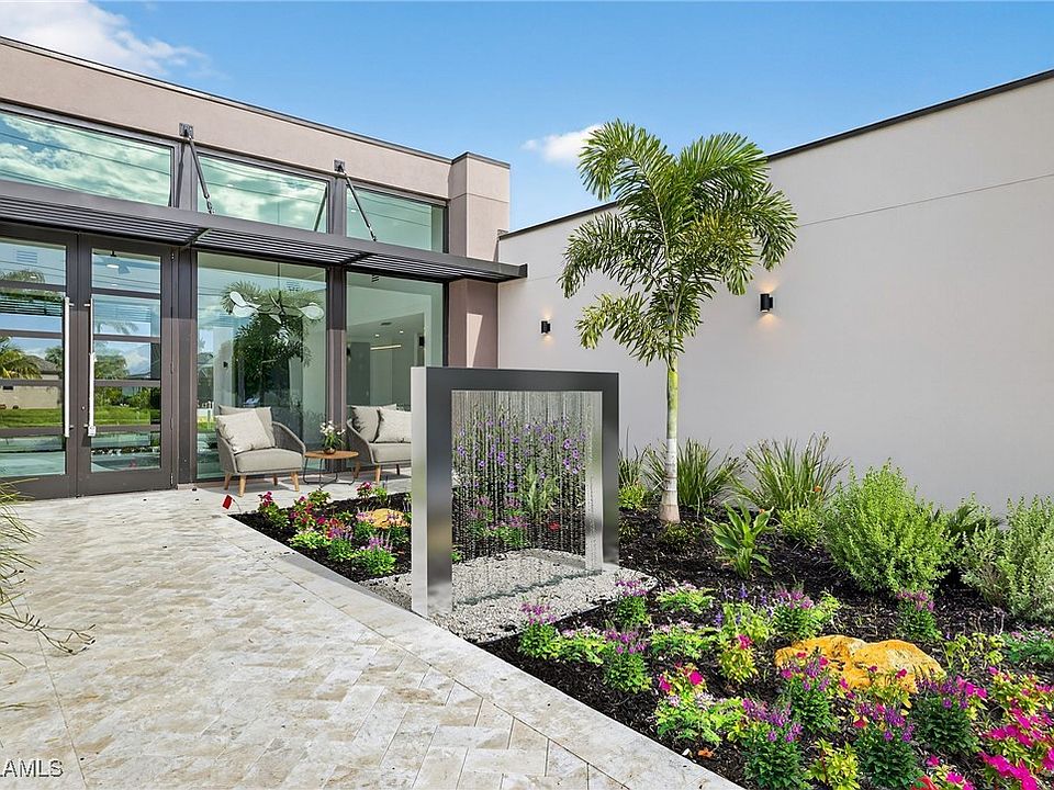 You are cordially invited to a private showing of the sophistically modern New Brand - Move-in-Ready - Waterfront Luxury single family residence located at 2608 SW 20th Ave in beautiful SW Cape Coral, Florida. Award winning architect included every element to reflect thoughtful upscale living including generously sized 4 bedrooms, an office with a private entrance, and 4 full size bathrooms. In addition to the primary suite, there are two guest bedrooms with full size bathrooms - perfect for visitors, multigenerational households, or AirB&B accommodations. The 4th full bathroom has access to the pool area. Functionality and impressive aesthetic appeal - perfection. His & her walk-in closets and vanities in the primary suite. Custom solid wood modern contemporary cabinetry with slow close doors and drawers. Large kitchen island with waterfall edges, and a 36" cooktop with backdraft venting. Quartzite leather-finish countertops. Top quality interior KitchenAid kitchen and laundry room appliances and Coyote appliances in the summer kitchen. Recognized lighting designer chose the modern light fixture package, including Volare dining chandelier with SkyX mounting. Custom wood closet organizers. Custom build-in wardrobe cabinet. Whole-house interior flooring: Italian 32” X 72” porcelain Burlington Cream. Exterior tile: Italian 24” X 48” anti-slip Burlington cream. Natural stone slab accent walls spotlight the primary suite Roman tub and the living room TV/fireplace accent wall. Upgradable smart home amenities including automated window treatments - premium brands: Lutron • Bandalux • Ubiquiti. Expansive hurricane resistant sliding glass doors and windows flood the open concept main living area with natural light, for seamless indoor-outdoor integration to your tropical oasis; where you’ll experience an average of 265 sunny days a year and a sultry average of 90 degree temperatures during the Spring and Summer months. Interior laundry room. Oversized two car garage. Upgraded landscape package and front entry courtyard water feature. Marble paver driveway. Exterior accent walls, lanai ceiling, and pool decking: wood composite European Norwegian Brazilian IPE tech deck and grooved siding. Relax in the cool blue pool water, an infinity edge, and tanning shelf. Exterior pre-colored stucco finish to ensure consistent color throughout and offer long-lasting fade-resistant coloration. The structural construction exceeds the building code with a 175MPH wind rating, instead of the code required 160MPH wind rating. No HOA fees. High speed internet available. Centralized utilities. The home is being partially staged. Furniture is negotiable. Whether you’re an angler or a boater, you’ll have stellar access to miles of winding canals, the Caloosahatchee River, and the Gulf of America from your backyard for some of the best boating and fishing opportunities in the State of Florida. You're a short drive away from beaches, dining, and shopping.