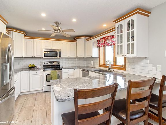 Home located on the Deer Run Golf Course with a great view of Hole 8. This 1.5 story home features cathedral ceiling with lots of windows in the main living area which enhances the backyards beautiful view. The beautiful white kitchen has new granite counters and stainless steel appliances. Large eating area and open family room are perfect for entertaining. The master suite is located on the main level with dual vanity sinks, jet tub, shower plus walk in closet. The upper level of this home has 3 additional bedrooms and full bath. Family time at its greatest will be spent in the finished lower level. This space is complete with wet bar, place for a pool table, workout area/play area plus tons of storage The heated attached garage is 1244 sqft, perfect for RV, multiple cars and hobbies You will love spending time on the maintenance free deck, fully fenced yard with storage shed. There are so many amazing amenities to this home, ask for more details