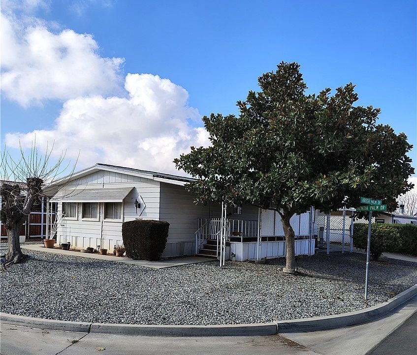 PRICE REDUCED TO SELL!!! 433A Permanent Foundation with the right offer. A charming turn-key home located on a highly desirable corner lot in a great location in Highland Palms - a hidden gem of a community just north of Menifee. ALL THIS AND YOU OWN THE LAND - NO SPACE RENT!!! This gently used part-time residence has 2 bedrooms, 2 baths and a den/family room. The kitchen has a darling cafe breakfast table and opens to a serene living space. Large carport with a nice shed for your she shed or man cave or both!