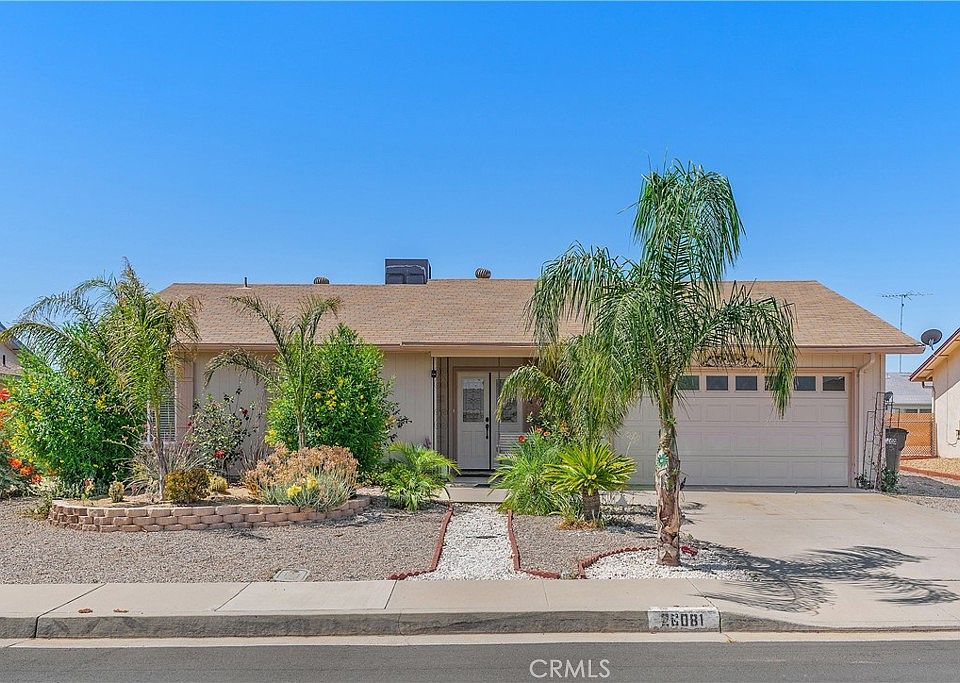 Beautifully remodeled two bedroom, two bath home in the 55+ community of Sun City. Enter to the inviting living room. The remodeled kitchen is off to the side and features quartz counters and upgraded appliances. The bedrooms and bathrooms are off to the other side along a short hallway. The spacious bedrooms provide a quiet place to relax. The bathrooms have been fully remodeled as well. The flooring provides a consistent flow throughout the home. Exit to the back through updated sliding doors, either from the kitchen area or from the bedroom. In the back, there is a large shed that has been insulated and finished inside for a private she-shed or man-cave. The front yard features lush water wise plants for a welcoming entry. The community offers many amenities, including pool, spa, shuffleboard, billiards, lawn bowling, horseshoes, meeting and recreation rooms and gym facilities.