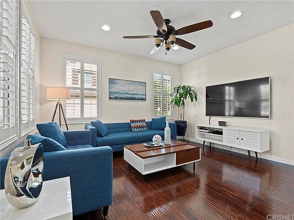 Location, Location, Location! Just off the 14 freeway, this 3 bedroom, 2.5 bathroom home is located in a gated community, across the street from the park! Beautiful wood-like flooring through-out! The gourmet kitchen features granite counter tops, and modern white cabinets! The master bedroom features a walk-in closet, and an attached bathroom with dual sinks and separate tub and shower! Secondary rooms are nice size as well. Plantation shutters in every room! Low maintenance backyard patio with built in BBQ! Minutes away from shopping, a block away from Golden Valley High School and easy access to the 14 freeway! Priced to sell!