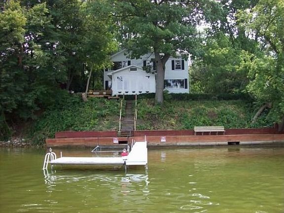 HIGH AND DRY ON DESIRABLE CHANNEL LAKE, THE BEST LAKE ON THE CHAIN O'LAKES! CLEANEST WATER, BEST FISHING, DEEPEST AND LEAST AMOUNT OF BOAT TRAFFIC. 105 FEET OF LAKE FRONTAGE WITH SANDY SHORELINE FOR EXCELLENT SWIMMING. NO FLOOD INSURANCE NEEDED HERE. BEAUTIFUL PANORAMIC LAKE VIEWS FROM MOST ROOMS. FOUR BEDROOMS, TWO FULL BATHROOMS AND TWO HALF BATHROOMS. FAMILY ROOM ON THE MAIN LEVEL. UPDATED KITCHEN AND BATHROOMS. LARGE DINING ROOM FRENCH DOORS AND LIVING ROOM WITH HUGE PICTURE WINDOW. SUN ROOM WITH ATRIUM DOOR TO BEAUTIFUL MULTI LEVEL WRAP AROUND DECK. 22X36 GARAGE WITH TWO ROOMS AT REAR. BOARDWALK ALL ALONG SEAWAL AND PIER STAYS.
