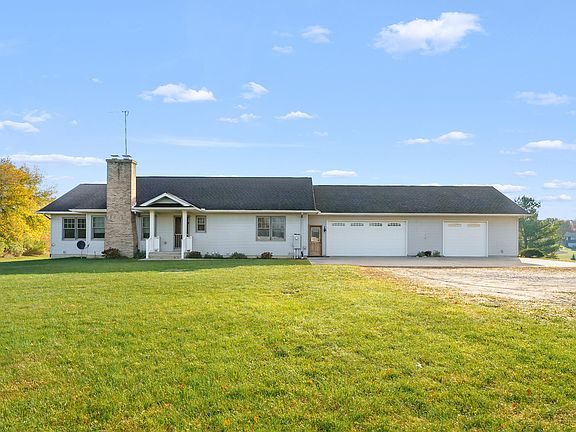 Discover the perfect blend of luxury, privacy, and country living in this stunning ranch style home nestled on nearly 9 acres of picturesque property. Step inside to an inviting main floor designed for effortless living, featuring all bedrooms and a convenient main floor laundry/mud room near the attached garage entry. The spacious dining area boasts a slider that opens to a composite deck, where you can enjoy serene views of the property's private pond, complete with a fountain and stocked with bass and bluegill, a perfect spot for fishing or relaxing. The primary bedroom is spacious and features a large walk in closet and ensuite bathroom. Each of the generously sized additional bedrooms offer walk in closets and share a full bath in the hall. The finished lower level is an entertainer's dream, featuring a comfortable living area and wet bar. A walk-out to a private patio seamlessly connects indoor and outdoor spaces. The lower level also provides an opportunity for additional family living. Not only are there three stalls of attached garage space, but for the hobbyists and those needing extra space, there is a fantastic 40 x 60 pole barn equipped with two overhead doors and electric. This versatile building is ideal for a workshop, storing equipment, or housing a collection. This home offers a lifestyle of comfort and recreation, all in one exceptional package.