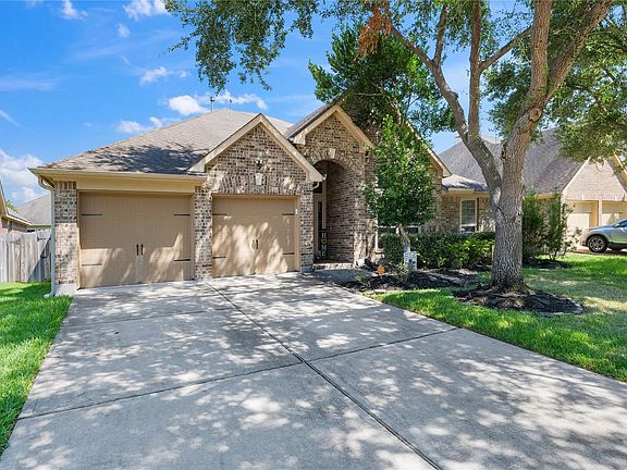 A spacious one-story brick home built with high ceilings, an open-concept layout, and an island kitchen with granite countertops and stainless steel appliances. The front features a welcoming arched entry, gabled rooflines, a three-car garage, and neat landscaping, while inside you’ll find modern finishes, a wonderful game room upstairs, and plenty of natural light. The home sits in Shadow Creek Ranch, a master-planned community known for its lakes, walking trails, green spaces, and access to neighborhood amenities like pools, playgrounds, and community centers. Conveniently located near Pearland Town Center, major shopping hubs, schools, and medical facilities, it blends suburban comfort with easy access to Houston’s urban offerings.