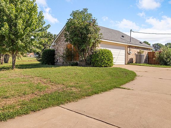 MOVE IN READY meticulously fully remodeled home situated in almost 1 acre lot. NO HOA. This open floor home has so much to offer. Updated baseboards, and wood flooring. Kitchen makeover with newer smooth efficient cabinets, backsplash, granite countertop and all BOSCH appliances. Both bathrooms fully updated with tile, sinks, toilet, walk-in showers, lighting and in primary bath bonus dry sauna for relaxation. All bedrooms have walk-in closets with built in shelves, fans. Some light fixtures throughout the home. Newer bay window at breakfast nook brings in tons of natural lighting and there is a separate formal dining area. The fireplace brick has been sealed to have long lasting look. The backyard is huge with peach tree and pear tree along with shed and covered patio perfect for entertaining. The garage has extra storage cabinet space. HVAC 2024, Roof 2023. No HOA.