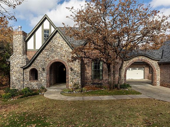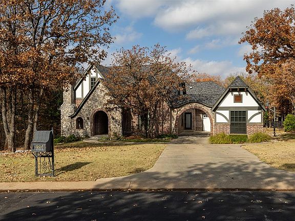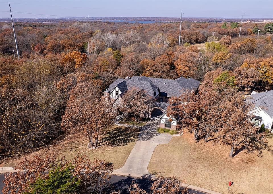A wooded retreat with timeless character. Located in Chitwood Farms, this exceptional home sits on a private wooded lot that backs to a peaceful greenbelt with creek and tree-lined views from nearly every room. Thoughtfully positioned to capture natural light through its cased picture windows, the residence blends elevated comfort, refined craftsmanship and timeless architectural detail throughout. The main level features three bedrooms and a dedicated study, creating an ideal layout for everyday living. The kitchen is a true chef’s retreat with custom cabinetry, a Bosch dishwasher, a commercial-grade Viking double oven, quartz countertops, double pantries, pull-out storage drawers and a charming vintage rolling-cart island that adds both character and function. The vaulted ceiling with exposed beams adds height and architectural character to the living room, where a stone fireplace and beautiful hardwood floors anchor the space, while the brick fireplace in the study adds warmth and character. The luxurious primary suite feels calm and beautifully appointed with Carrara marble finishes, dual vanities, a generous shower and an oversized closet with direct access to the laundry room for everyday convenience. An additional bedroom and a large bonus room upstairs add flexibility for a media room, guest suite, gym or play space. A courtyard-style driveway and three-car garage enhance curb appeal while offering ample parking and storage. The side deck, positioned to overlook the wooded creek, provides a quiet place to unwind or entertain surrounded by nature. Every detail reflects thoughtful design and lasting craftsmanship, resulting in a home that truly stands out among homes in Chitwood Farms, a neighborhood known for its quiet streets, spacious lots, and well-maintained properties. This residence offers wooded privacy paired with luxury living close to Edmond amenities, near Arcadia Lake & with easy access to I-35, all within Edmond Schools. A beautiful place to be.
