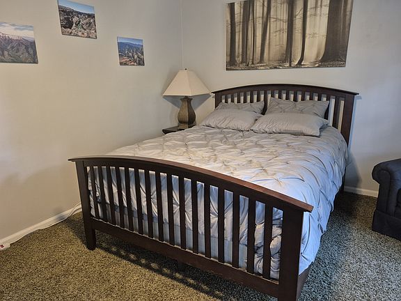 Private room furnished with queen bed, desk and monitor, bedside table, and lamps. Large windows and spacious closet. It's on the 2nd floor with access to a recently renovated, shared full bath, on the same level. The home is 4600 sq ft, 5 bed 4 bath, and includes a hot tub, game room, pool table, bar, climate controlled garage, speaker system from the back deck to the basement, two living rooms, two dining rooms, a reading nook, full kitchen with oversized smart refrigerator, double ovens, gas range with hood, island, and private cabinet space. The backyard also has multiple sheds, a fire pit, and two gardens. The entire home aside from the master suite is shared among every guest/roommate and the property manager on site.