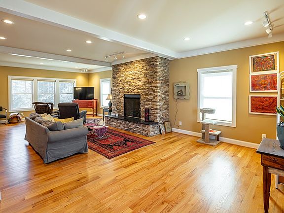 REDUCED $10,000.00 Nestled on 3 acres in town, this stunning home, built in 2020 by Troy Clem, offers a perfect blend of modern comfort and convenience. It is located just minutes from the YMCA, hospital, shopping, dining, and downtown South Boston, VA. One of the standout features of this custom-built home is the exquisite solid oak stairway with its low-rise, easy-walking treads to the second floor. The boards were hand-picked and built on-site to ensure perfection. The home boasts a gorgeous stone fireplace with gas logs, beautiful wood floors, and a spacious kitchen equipped with an island, gas stove, and granite countertops. The light fixtures over the dining table and island are fabulous and in keeping with the style and vibe of the home. The primary suite is conveniently located on the first floor and has an ensuite. On the second floor, there are two additional bedrooms and a bath. Relax on the screened porch and just enjoy the tranquil surroundings. The property also includes a detached two-car garage with extra workshop space. A storage building with an attached shed is at the back of the property. This rare find offers space, privacy, and a prime location!
