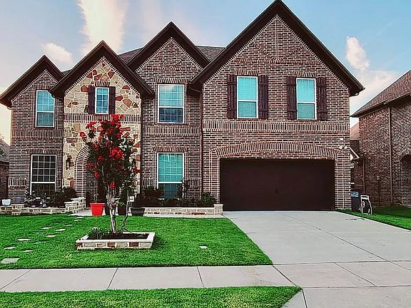 This elegant Landon-built home in the highly acclaimed Frisco ISD offers a blend of luxury, functionality, and space. With five bedrooms and four and a half bathrooms, it features soaring ceilings and an open-concept layout that enhances natural light and flow. The main level includes two bedrooms, a private office, and a spacious family room that seamlessly connects to a gourmet kitchen with quartz countertops, stainless steel appliances, a breakfast nook, and walk-in pantry. Hardwood floors span the living areas and office, while bedrooms are comfortably carpeted and bathrooms finished with tile.