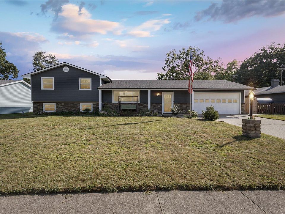 Beautiful, updated tri-level home in the highly sought-after Reverewood subdivision in Mishawaka awaits its new owner. This home has been very lovingly cared for and updated by the same owner for over 20 years. Enter into a nice welcoming foyer area. Head into a HUGE dining room area which could be used as another living room area. Kitchen has newer appliances all included, loads of cabinets, and plenty of countertop space. Large great room area is perfect for entertaining or relaxing and features beautiful hardwood flooring. Head upstairs and you will find 3 nice-sized bedrooms and fully updated full bath. Head down a few stairs and you will find bedroom #4, a nice living room space, and updated 1/2 bath and laundry room combo. You will love the rare Reverewood TWO-CAR attached garage with newer opener which can be opened and closed using your phone. Enjoy the last few weeks of summer relaxing in the swimming pool in the large, fully fenced-in backyard. Replacement windows, newer roof, newer HVAC, newer water heater, newer appliances, newer siding, gutters, and more. Schedule your showing today.