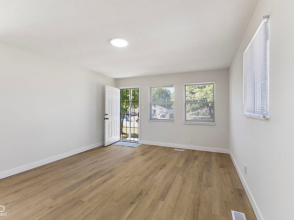 Welcome to this newly renovated 4 bedroom, 1.5 bathroom bungalow (or 3 bedrooms + an office)! With a NEW roof, water heater, furnace and windows with blinds - a lot of the big ticket items have been taken care of for your peace of mind. The covered front porch leads you inside where you'll see new luxury vinyl plank (LVP) flooring, fresh paint, modern finishes and lighting throughout the home. The stylish kitchen is a dream; it features gorgeous two-toned kitchen cabinets with gold hardware, new quartz countertop and backsplash, under-mounted double bowl sink, and stainless steel appliances that stay! Enjoy the primary bedroom which is connected to a bathroom and the laundry room. All other rooms include closets and are nicely sized for children, guests and even an office space. Comfortably host family events, let kids play and pets roam in the large backyard which is fenced in. Located just minutes from I-70 with easy access to I-465 and downtown Indy, this move in ready home offers comfort and convenience!