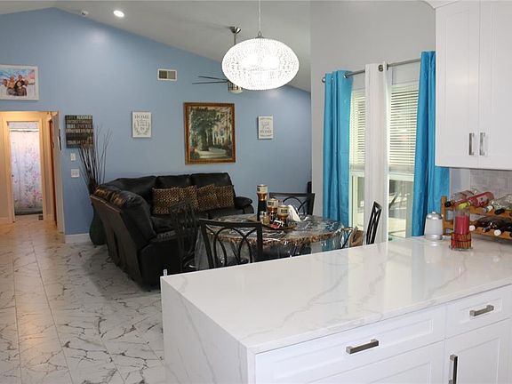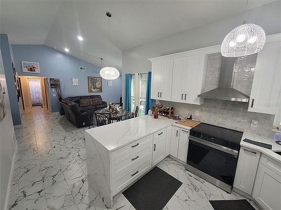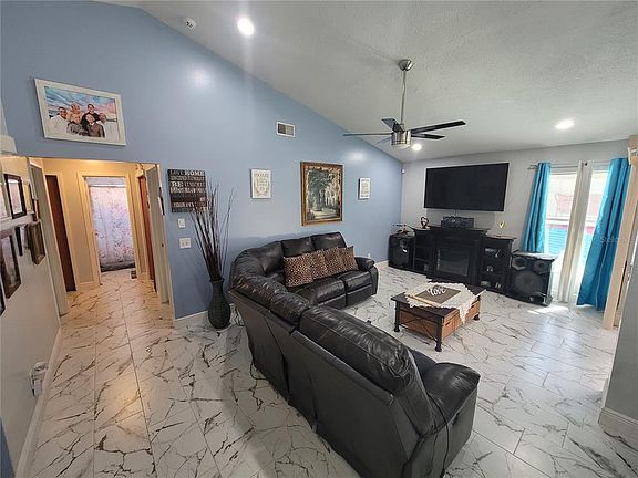 Discover this beautifully remodeled 3-bedroom, 2-bathroom home featuring a stunning oversized screened-in pool and an extended patio with a covered outdoor bar perfect for relaxing or entertaining. Step inside to find sleek porcelain tile flooring throughout, a brand-new kitchen with smart stainless steel appliances, modern cabinetry, and new recessed lighting that brightens every room. The master bedroom includes customizable color-changing lighting for added ambiance. Both bathrooms have been fully upgraded with stylish new tile work, contemporary vanities, updated showers, and tubs. Enjoy comfort and energy efficiency with all-new hurricane-resistant windows and a state-of-the-art solar panel system that helps keep energy costs to a minimum. Conveniently located just minutes from major highways, shopping centers, dining, and entertainment options, this home offers the ideal blend of comfort, style, and location. Don't miss this opportunity schedule your private tour today!