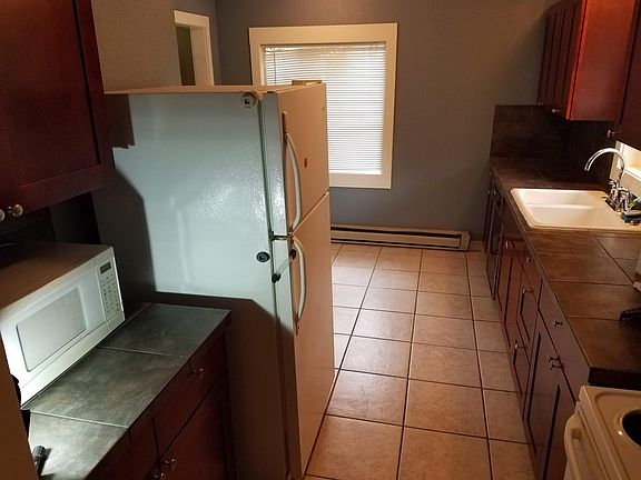 The main living area has a living room which opens into the kitchen with lots of natural light. The small front yard is fenced in, and the large back yard has a lawn and off-street parking for 3 cars, but no garage.