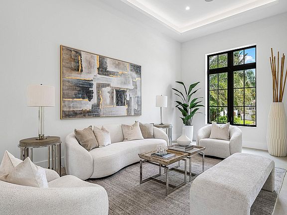 Welcome to 2609 NE 27 Way - coastal luxury in Coral Ridge. This newly constructed home embodies the essence of indoor/outdoor living. With an expansive 30ft retractable glass door leading to a backyard oasis, you'll enjoy the pool, spa and covered patio with automatic screens for ultimate comfort and relaxation. The kitchen has Thermador appliances, a spacious walk-through pantry and a stunning 11ft island. The first floor offers 2 living rooms, dining area, an ensuite bedroom/office/gym, laundry room and cabana bath. The 1st floor primary suite has direct pool access and a luxurious bathroom with a double shower and soaking tub. Ascend to the 2nd floor entertainment loft, wet bar, balcony, laundry room & 3 additional ensuite bedrooms. CRESTRON smart home system. Move-in ready!