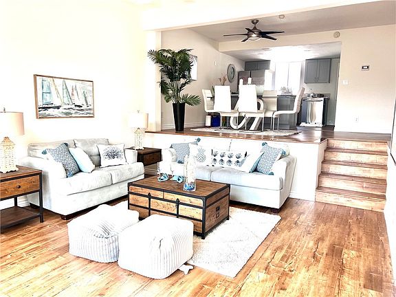 Upstairs is the master bedroom with a master bathroom. Additionally, there is a second bedroom and another full bathroom between the atrium and the second bedroom. The atrium brings light and breeze into the house, creating a natural coastal feeling! The bottom floor is the large two-car garage with extra storage. With a few steps up, it leads right into the living room. Come and call this freshly painted and newly remodeled condo your new home!