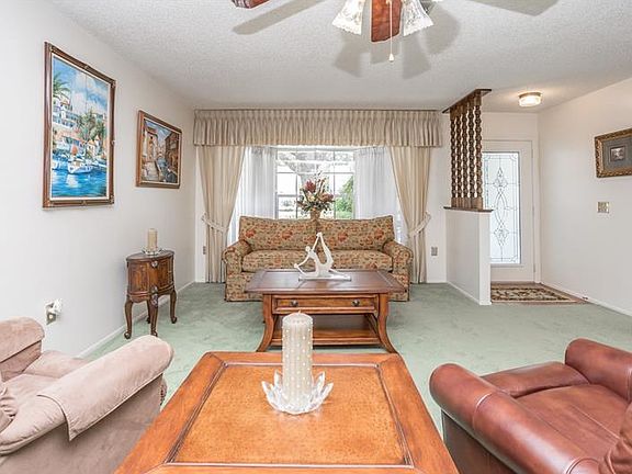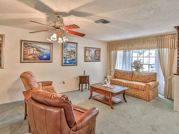 55 plus Country Club living, this community has 63 holes of "almost free" golf, 8 tennis courts, restaurant, and SO MUCH MORE. Near Tampa, Orlando,and the Gulf. Charming front porch w/railing, & an enclosed lanai w/tile offering Florida style outdoor living. Oversized rooms, split plan, and fully furnished down to the dishes and golf cart. Inside laundry with sink & cabinets. Master bedroom, walk in closet, master bath with walk in shower, sliders lead to the lanai. The guest bedroom allows for a king size bed offers a spacious environment for your guests. The family room is VERY large offering the perfect setting for entertaining. Call today