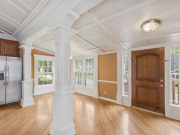 The main level includes vaulted ceilings, hardwood floors, and an open kitchen layout with granite counters, a kitchen island, and newer cabinets. While the interior could benefit from updates and repairs, major systems have already been addressed: the roof, HVAC, and hot water heater have all been recently replaced, providing peace of mind for future improvements.