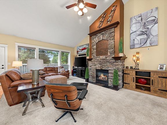This exceptional 4-bedroom, 3-bathroom rancher in the desirable Mead School district offers over 3,700 square feet of beautifully designed living space. You will love the soaring ceilings, an open-concept layout, and upscale touches, including a stone fireplace, hardwood floors, and solid wood doors. The kitchen features abundant storage, stainless steel appliances, and granite countertops. The primary suite has everything you need—an oversized walk-in closet, soaking tub, dual vanities, and a separate shower. The newly finished lower level is the perfect gathering space for family and friends. Enjoy movie nights, a game of pool, shuffleboard, or hanging out at the bar. Don’t miss the secret storage room tucked away behind a mirror! Outdoor living is just as inviting with a spacious back deck, hot tub, and a tranquil waterfall feature. With generous storage throughout, plus a large, fully insulated, drywalled, textured, and painted 3-car garage. Don’t miss your chance to own this one-of-a-kind property.