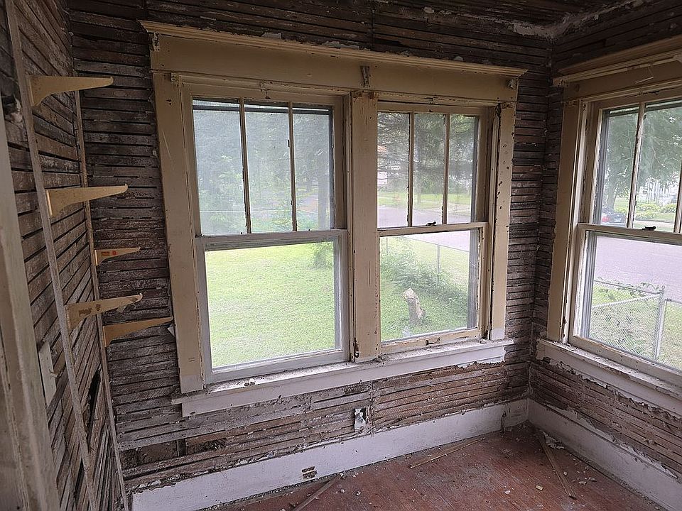This home has been stripped and ready for remodel. New roof and back porch in September 24. New basement windows in 23. Some water lines updated and new sump pump in 23. Extra large lot on side and back of property.