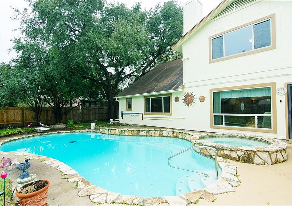 2 story w/attractive in-ground pool & hot tub, 4 bed, 2.5 bath, 2 living & 2 dining. Master on main level. Oversized secondary bedrooms. 4th bed could be used as a media room/office. Double pane windows & ceiling fans. Garage door opener & spring recently replaced. Morgan storage shed 10'x16'. Private back yard w/mature trees. All 3 levels of schools in neighborhood. Don't miss your opportunity to live in this highly desired neighborhood! Price has been adjusted to reflect any desired updates.