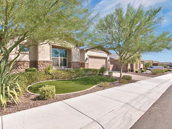 Perfect place to call home! This property is located within a gorgeous, well maintained gated ''Querencia'' community just minutes from Lake Pleasant! Close to new Semiconductor plant (2024 expected completion), loads of restaurants, shops, malls, and huge new Paloma Park w stocked lake and playgrounds just down the street. Home is right in the middle of a hiking and biking mecca..a true outdoor lovers' dream! Sits high on a premiere hillside lot with mountain views in the front and preserve in the back-lots of privacy! Home includes OWNED SOLAR so you can take advantage of LOW utility bills! Backyard is perfect for entertaining with LARGE outdoor patio, outdoor gas fireplace and TV! Sparkling private pool with waterfall and optional heat pump to use during the cooler months. Putting green on side yard..Wood tile throughout- NO CARPET. Gourmet Chef kitchen with double-oven, farm style sink, and quartz countertops. Real wood accent walls. Gorgeous Owners Suite with luxury bathroom featuring walk in shower, huge soaking tub, and barn doors. 3 car tandem style garage features epoxy flooring and built-in cabinetry. Soft water system. Ring doorbell. Home like new. Built-in desk off kitchen/family room. All persons 18+ years of age must submit an application (see documents tab). Tenant required to hold renters insurance. Monthly rent includes pool service and yard maintenance. Truly a one of a kind property unlike any other you'll see!! No smoking