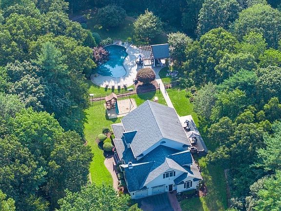 Perched on a nearly 8 acres, this private haven looks out over serene Beaumonts Pond. A perfect blend of traditional elegance and modern amenities are found in this 5 bed,4.1 bath home. The chef's kitchen is equipped w/ stainless appliances, quartz countertops, island, dining area & full pantry. Flow continues to the family room with fireplace, French doors & scenic views of the gardens.The formal dining & living rooms are ideal for entertaining.The first floor is also home to an office/ bonus bedroom & laundry room. Upstairs, the Primary suite boasts a cathedral ceiling, huge cedar closet & ensuite bath and is complemented by three bedrooms & two full baths.The lower level offers media and flex spaces, a sauna & full bath. Outside is a true dream featuring heated pool,gardens & fabulous outdoor kitchen! A fabulous outbuilding offers generous storage while upstairs finds a rustic guest suite w/ kitchenette & reclaimed wood features. A unique and exceptional property in a special town!