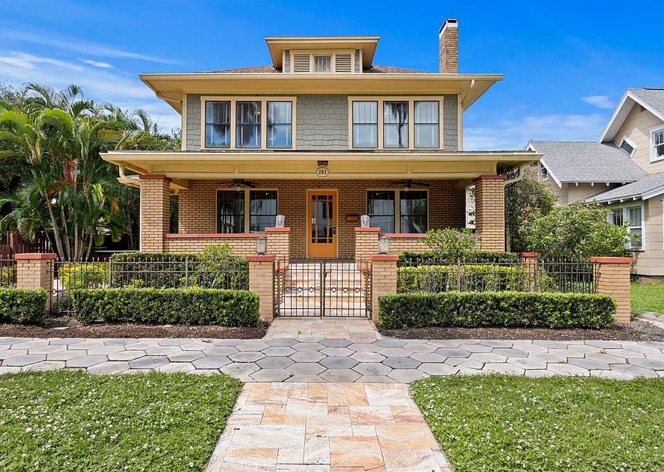 Step into this beautifully preserved 1920s Craftsman-style home, nestled in the heart of the Historic Old Northeast neighborhood, where timeless charm meets modern potential. This two-story gem showcases classic architectural details like a spectacular spacious front porch, overhanging eaves, tapered columns, and rich woodwork throughout. The main house offers 3 spacious bedrooms, 2 generously sized bathrooms, and just under 2,300 square feet of living space with an additional 700 square feet in garage apartment. The oversized side yard is landscaped beautifully with over $100,000 in Italian Travertine, amazing fountain and wrought iron fencing!! Original features such as hardwood floors, built-in cabinetry, crown molding, and large, sun-filled windows embody the craftsmanship of the era, creating a warm and inviting atmosphere. The property’s standout feature is the detached 2-bedroom, 1-bath garage apartment, complete with a full kitchen—perfect for generating additional rental income or hosting extended family. Zoned for multi-family use, this 55 x 127 lot offers tremendous potential, including future development possibilities. With a rare five-car garage, there’s ample space for parking and storage. Located just steps from vibrant downtown St. Pete, you’ll enjoy easy access to trendy restaurants, boutique shops, museums, and scenic waterfront parks—including the famous St. Pete Pier. Whether you're seeking a charming family home with income potential or a smart investment, this Craftsman-style beauty offers both history and opportunity in one of St. Petersburg’s most desirable neighborhoods. Don’t miss out!