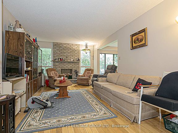 Sturdy detached grey-brick homeGenerous primary suiteDouble-sided fireplaceMain-floor powder roomEat-in kitchenExtra-wide sliding doors
