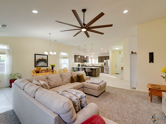 Welcome to a home that doesn't just meet expectations, it surpasses them. This turn-key, model-like home is nestled on a peaceful cul-de-sac street in the Victoria Park subdivision. This remarkable residence boasts an abundance of sophisticated upgrades including 12x24 tile flooring throughout all areas except the bedrooms. There are upgraded panel doors throughout creating a luxurious feel. The heart of the home features an entertainers kitchen open to the living room with granite countertops, bar-top seating, sleek grey cabinets, stainless steel appliances, and a reverse osmosis system. The oversized primary suite is a haven of relaxation, boasting dual Kohler sinks, a large walk-in closet, an additional bedroom closet and a spacious custom tiled shower. The home's design is further enhanced by 9-foot ceilings, recessed lighting, ceiling fans, a convenient hallway linen cabinet, and stylish window coverings. All bathrooms have matching granite counters and grey cabinets. The indoor laundry room is located in its own room and equipped with upper cabinets. Outside, the front and rear landscaping is beautifully designed, featuring additional concrete walk paths, a seating area, a stunning backyard with two patios with decking, artificial grass, multiple fruit trees, a garden, and additional seating areas, all complemented by a gas stub for a BBQ and perimeter concrete around the home. The finished garage is complete with an on-demand hot water heater, 2 shop lights, and a fan. This home doesn't just check all the boxes. It exceeds it!