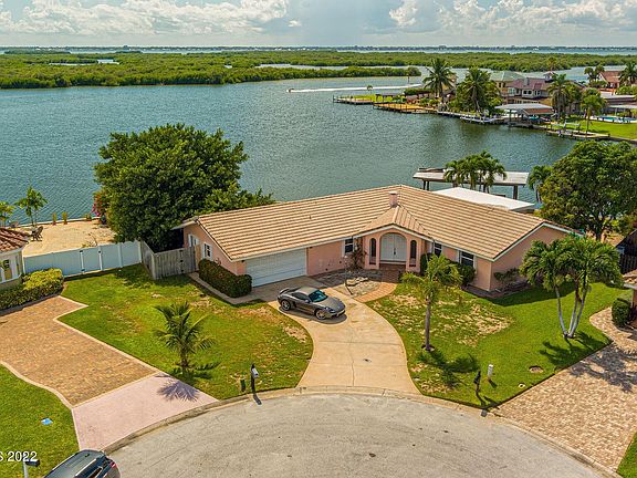 It is often said that a Picture is Worth a Thousand Words. This picturesque setting is worth a lifetime of memories! The nearly 1/3 Acre pie-shaped lot offers 180' of panoramic river views with spectacular sunsets over the Thousand Islands. You'll enjoy relaxing in the refreshing pool or fishing and boating from your private dock. The interior features a split-bedroom floor plan, spacious living areas and an updated kitchen and main bath. Most windows and all sliders were replaced with PGT Impact ResistantGlass for carefree storm protection. Vista view kitchen windows overlook the river and have Bahama shutters for added safety. The cul-de-sac location means no thru-traffic and an extra long driveway. To top it off, World Famous Cocoa Beach is just a few short blocks away!