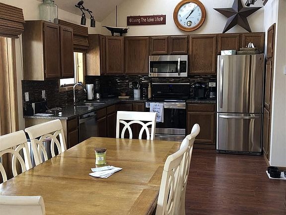 An oasis on Lake Metigoshie offering 45 feet of lake front, beautiful views from both sprawling decks out to a park like setting with a large flat front yard. This newly renovated home is nestled in trees and offers many outstanding amenities. The open floor plan on the main level offers an updated kitchen including granite counter tops and newer stainless steel appliances. The laminate wood flooring is new and consistent throughout the main floor into the dinning room with new carpet in the master and a beautifully redone full bathroom. An open air loft with sky lights is above which offers more space to entertain guests, sleeping quarters, office or game room area. The lower level consists of a family room with a large TV, bar/gaming area with fridge, rock wood burning fire place and another bedroom along with a 3/4 newly tiled shower. Throughout the lower level you'll experience warm electric floor heat and another sliding glass door to the lower level deck which allows easy access to the lake front. 45 feet of lake front. Many improvements were made to the exterior living space with an additional landscaped area for lounging or leisurely outdoor grilling. This home is priced to sell and comes fully furnished with a dock system to replace the currently existing one. Please call for an opportunity to view this beautiful lake home.