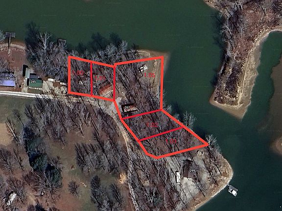 Property consists of 5 adjacent lots totaling about 1 acre. One of the lots (1.05) is a double lot. There are 3 pavilions on the property (lots 1.00, 1.01, 1.05). Two of the pavilions are welded steel construction; one is bolted steel construction. There is over 500 ft of waterfront which is never dry even at low water conditions. The shoreline is protected by professionally installed armor rocked (rip rap) shoreline. The property has many mature trees providing heavily shaded grounds. There is nearby access to the private boat ramp for the RV resort’s property owner use. The property is conveniently situated off highway 641.