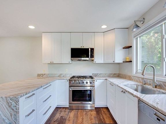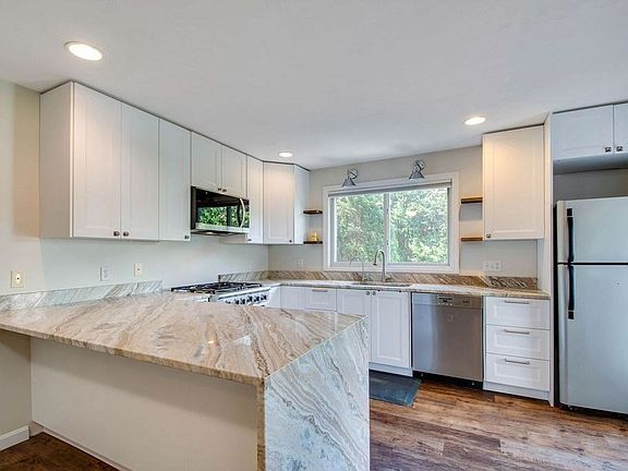 Move right into this light & bright 2BR 2.5BA townhouse privately located in the popular Village of a Thousand Pines! This beautiful end unit townhouse has been meticulously maintained and offers an open floorplan with a cozy fireplace, private deck and 2 car garage. Kitchen has granite counters and stainless-steel appliances. Both bedrooms have full baths. Primary bath has a relaxing jacuzzi and gas fireplace. Plenty of closet space throughout the home. This quiet neighborhood is wonderful for evening walks or morning jogs yet only minutes to shopping and other amenities. Renovated with luxury vinyl plank (LVP) flooring throughout, new stair carpet, kitchen cabinets, countertops, microwave, washer, dryer, furnace, air condtioning and painted last 2 years. Condo is vacant so seller can close quickly!