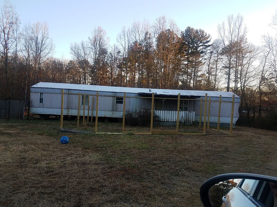 The single-wide is available on 2 Acres needs some work. Kitchen was gutted and three quarter inch plywood put down from Kitchen to master bathroom. So Kitchen needs cabinets installed and the garden tub needs to be reset in master bathroom. Living room has laminate flooring and a fireplace. Has big covered front porch and large back porch and very large yard in a cul-de-sac