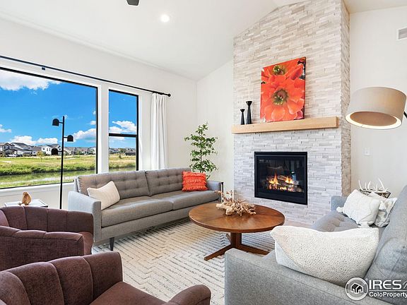Set on a large premium lot that backs to a wide, serene canal teeming with wildlife & directly connected to Windsor Lake, this exceptional ranch-style home offers a rare blend of natural beauty, privacy, & refined living. From the back covered patio, take in sweeping views of the Front Range, including the iconic peaks of Mount Meeker & Longs Peak-an ever-changing backdrop for daily life. Elegant architectural details and a professionally designed xeriscaped yard create striking curb appeal, while the thoughtfully designed interior exudes warmth & sophistication. The open-concept main level centers around a chef's dream kitchen, featuring custom Milarc cabinetry, a suite of high-end Dacor appliances, including a 6-burner gas range, reverse osmosis water filer, & expansive countertops-perfect for entertaining or everyday living. The adjoining living room offers a cozy yet stylish retreat with a sleek gas fireplace & expansive windows that frame the canal and mountain views. The luxurious primary suite is a peaceful haven, complete with its own gas fireplace & a spa-inspired 5-piece bath featuring a freestanding soaking tub, dual vanities, & a spacious walk-in shower. Two additional bedrooms, another full & half bath, & a well-appointed laundry room complete the main floor. Downstairs, the finished basement expands your living space with a generous great room, a flexible entertainment room or home office, two more bedrooms, & a full bath-ideal for guests, multi-generational living, or relaxed recreation. Don't forget the spacious 3.5-car garage, featuring a 9-foot door on the third bay & a premium epoxy, non-slip floor coating-providing ample room for your vehicles, a small workshop, & storage for recreational toys. Solar panels are also included! This fantastic home combines luxury finishes with the tranquility of waterfront living & unobstructed mountain vistas-offering the best of Colorado living in the coveted Greenspire at Windsor Lake community.