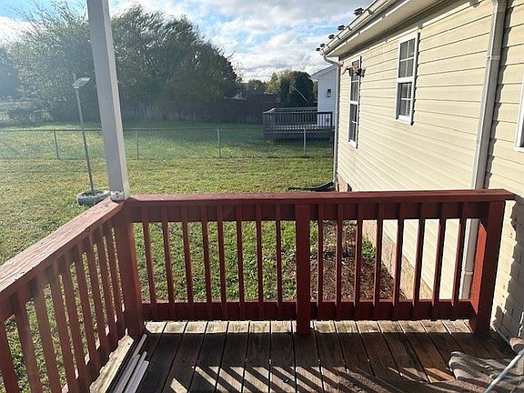 3 bedroom, 1 1/2 bath, range, refrigerator, dishwasher, central air & heat, storage shed, front porch, deck, interior freshly painted, brand new carpet and kitchen vinyl, level lot,