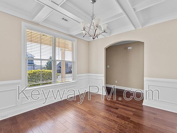 Dining area with coffered ceilings & wainscoting