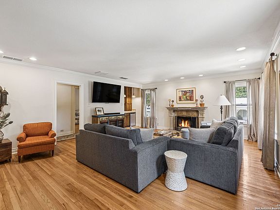 Alamo Heights location within AHISD * Close to Sunset Ridge Shopping Center, Central Market, the Pearl District, and Downtown San Antonio 261 E Fair Oaks Pl is a beautifully updated 4-bedroom, 4.5-bath home offering approximately 2,922 square feet of inviting living space on a tree-lined street in the heart of Alamo Heights. Thoughtful 2024-2025 improvements include freshly painted interiors (July 2025), updated lighting (June 2025), enhanced insulation, and a new HVAC system with UV filtration (June 2025) to help reduce allergens. Additional upgrades include a 2024 A/C unit, prior HVAC enhancements (2023), new roof and gutters (2025), and new sod that enhances curb appeal and outdoor comfort while preserving the home's mid-century warmth and character. The living room features hardwood floors, crown molding, and a limestone fireplace anchored by custom cabinetry and a built-in bar with wine fridge. The updated kitchen offers granite countertops, stainless appliances, a gas range, and generous cabinet storage adjoining a cozy dining nook. A spacious family room with Saltillo tile and window walls opens to a large deck-ideal for outdoor dining or entertaining beneath mature oaks. The floor plan includes two living areas, four bedrooms, and 4.5 baths, including a guest suite on the main level and a thoughtfully separated primary suite upstairs with a walk-in closet and dual-sink bath. A flex office niche, indoor laundry room, and built-in storage add everyday functionality. Outside, the fenced backyard features raised garden beds, lush lawn, and a detached two-car garage with epoxy flooring and an extended driveway for extra parking. Mature trees and privacy landscaping frame a setting that's both inviting and versatile-offering space for relaxation or a future pool. Located just minutes from Sunset Ridge Shopping Center, Central Market, Alamo Quarry Market, and numerous cafes and restaurants along Broadway and Austin Highway. Convenient access to Olmos Basin Park, Brackenridge Park, and The Pearl District connects everyday living to shopping, dining, and recreation throughout central San Antonio.