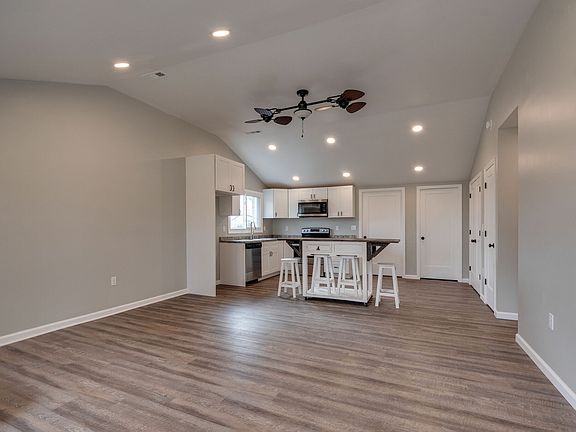 This freshly remodeled cottage is new from top to bottom! On this beautiful 1.7 acre lot you will find a large storm shelter, a 3 bay open garage, and a beautiful rolling back yard! This home offers new LVP flooring throughout with carpet in the bedrooms, a large laundry room / mud room, and an open living area with a vaulted ceiling! The kitchen has new cabinets & countertops, SS appliances, a large pantry, and a window over the sink! You will also find a mobile island that can serve as a day-to-day meal spot and it can be rolled out of the way when entertaining guests! NEW windows! NEW HVAC system! NEW roof! NEW hot water heater! NEW plumbing! NEW electrical!