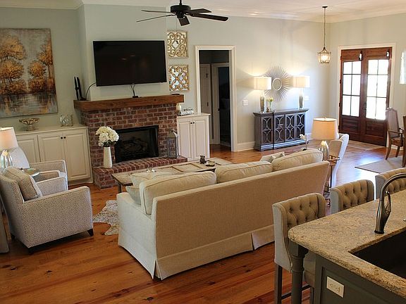Customized, open 3/2 in desirable Fieldstone. Double doors open into the foyer of this light filled home. To the left, is a formal dining space and straight ahead is the large living area. This house is adorned with plantation shutters, blinds and draperies that remain with the home as well as heart pine floors that extend through the living areas and into the master bedroom. The kitchen is custom with granite countertops, separate gas top stove, island with farm house sink and to-the-ceiling cabinets. The master bedroom is very large and feels even more spacious because of the tray ceiling. This bedroom overlooks the private, tree-lined backyard. The master bath features granite countertops, custom cabinetry, separate jetted tub, tiled shower and water closet. On the opposite wing of the house, are the two guest bedrooms, the second bath and a hallway that features a coat closet, as well as a linen closet. Both bedrooms are big enough for queen sized beds and both have nice closets. The laundry room is loaded with cabinetry and countertops. There is a large locker area, with more storage, leading to the garage. This home features an overly long and extra wide garage that has an inset for a refrigerator or freezer, as well as a large storage room. Plenty of room for trucks and toys. Covered back patio for your enjoyment and a fenced in backyard, no matter the weather, rounds out this home.